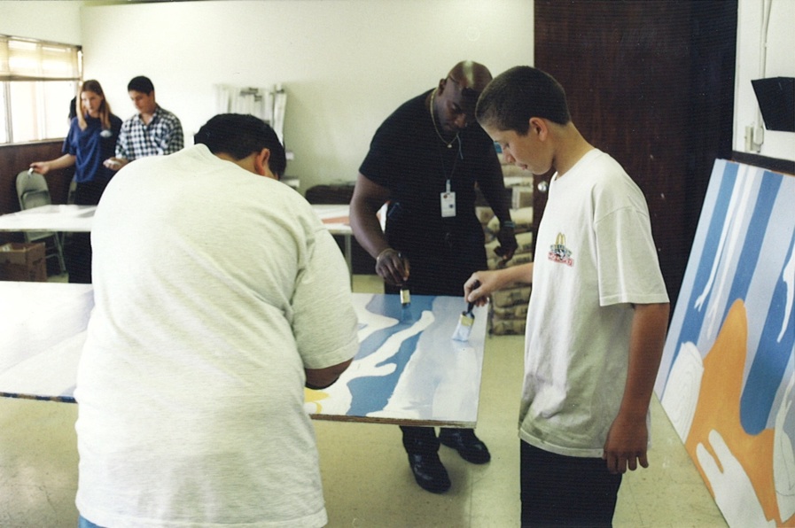 The theme of the Arts Alive! mural depicts a harmonious blend of color, line, and design signifying the Reed Whipple Cultural Center’s diverse visual, performing, and cultural arts programs. Adjudicated youths from Clark County Juvenile Justice Center and their probation officers helped with the painting of the Arts Alive! mural.